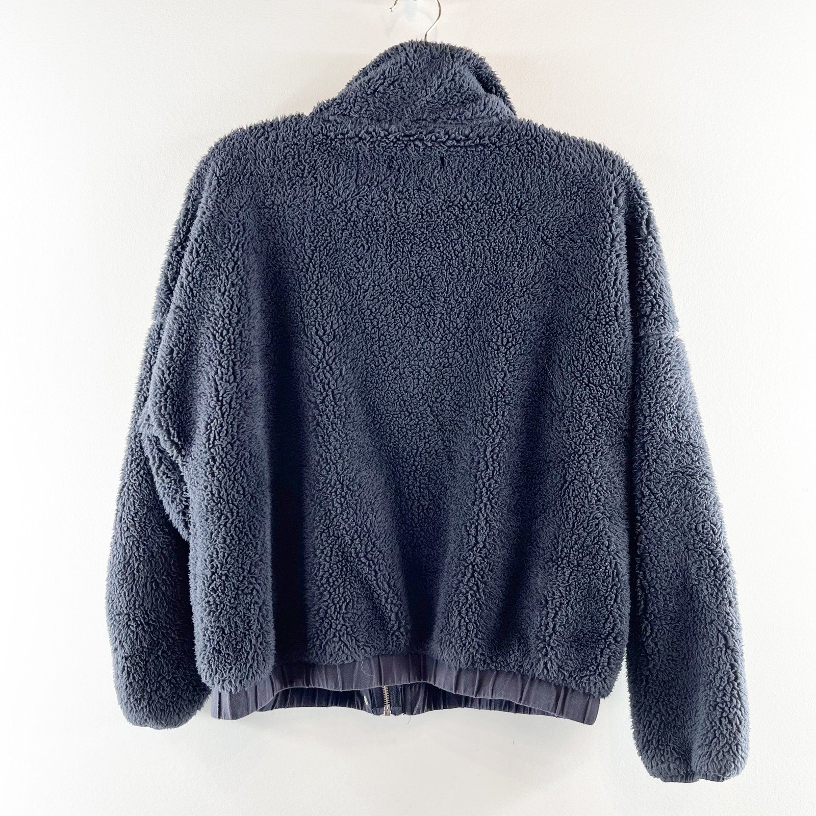Z Supply Dakota Dropped Shoulder Full Zip Winter Sherpa Jacket Navy Small
