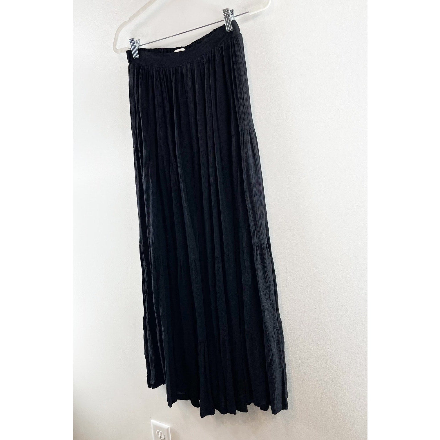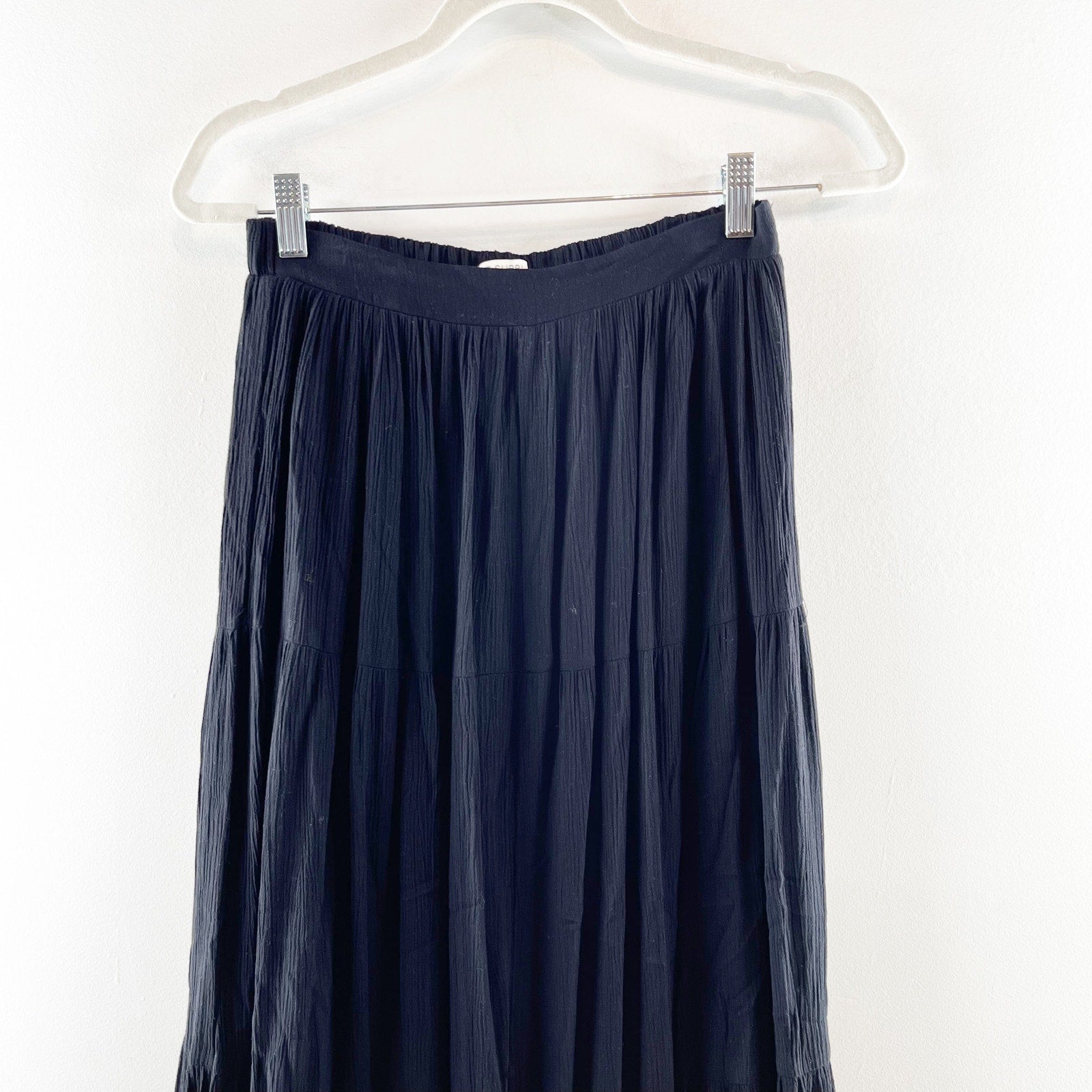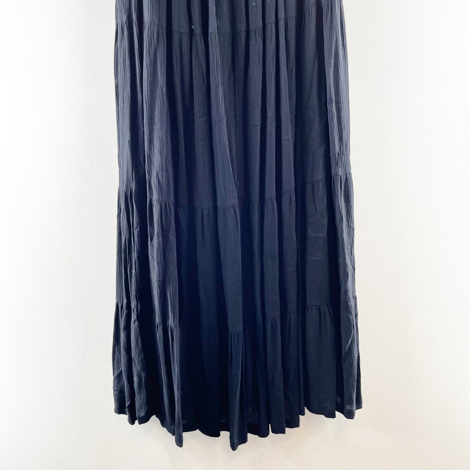Z Supply Nikola Crinkled High Waisted Tiered Maxi Skirt Black Small