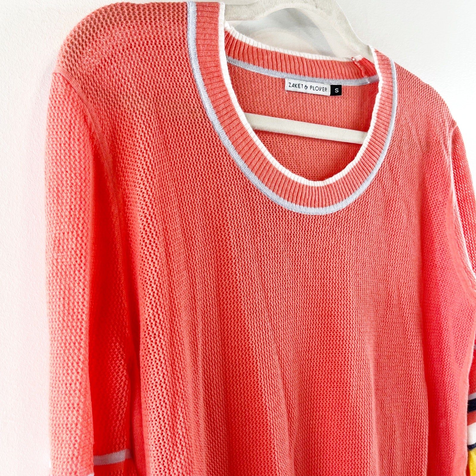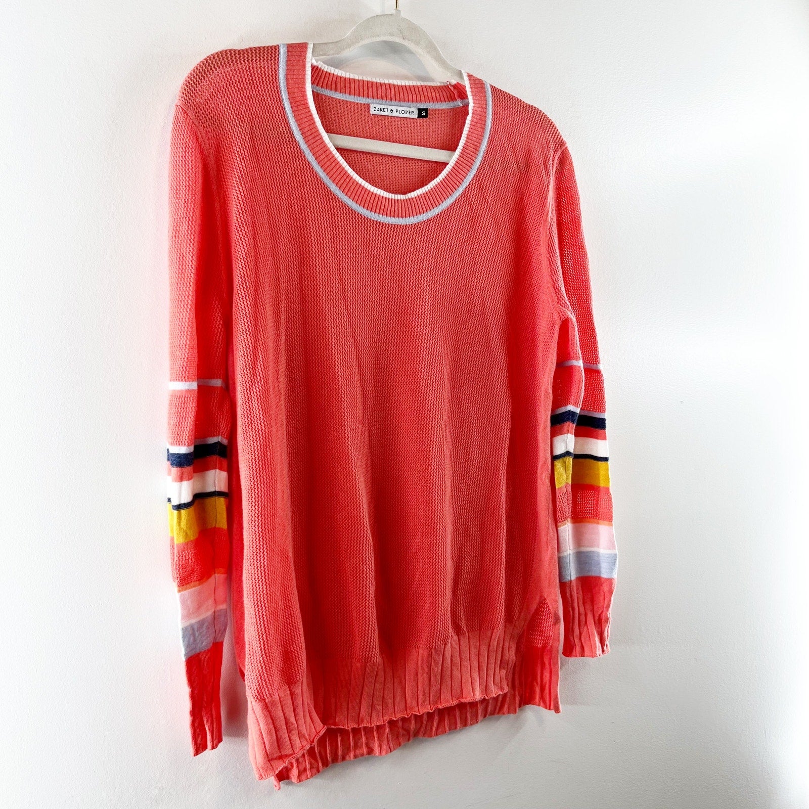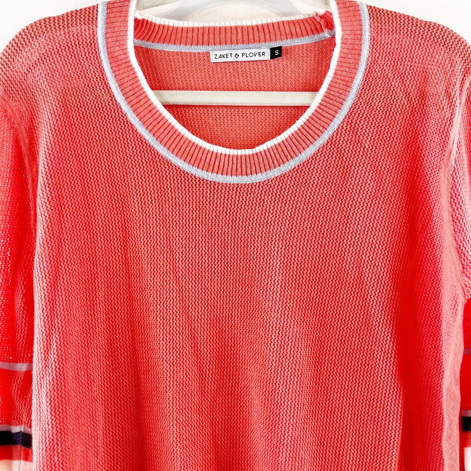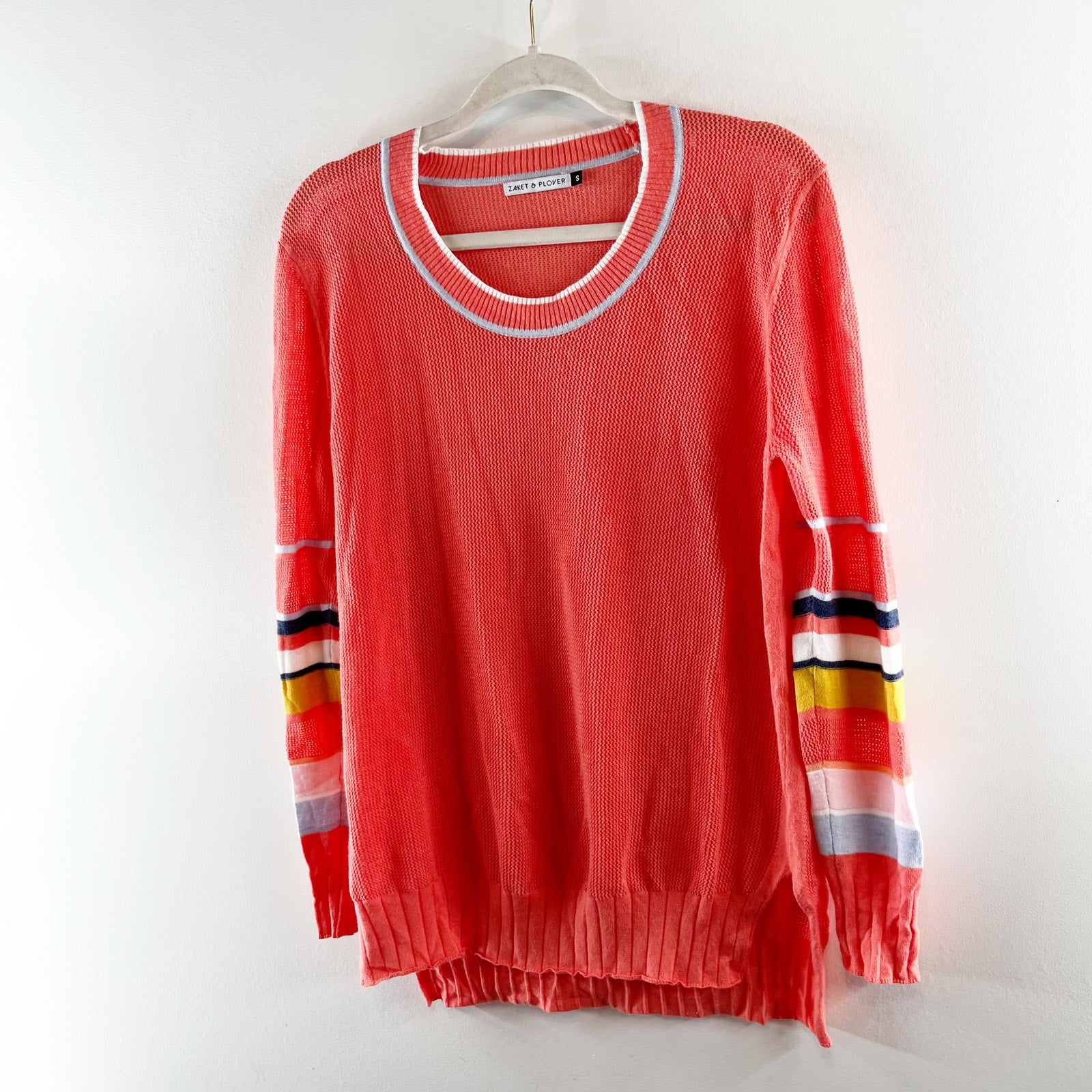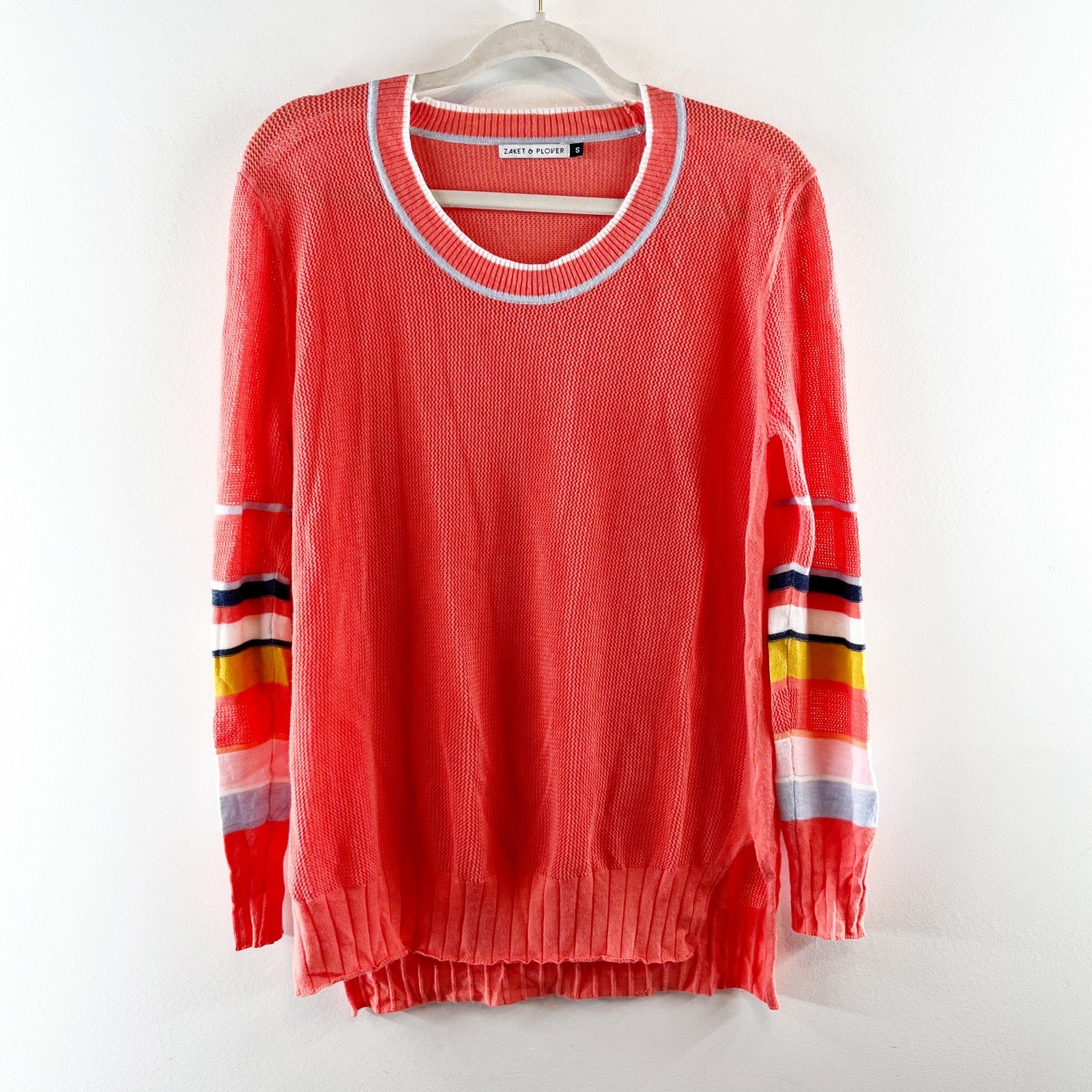 Zaket & Plover Long Sleeve Stripe Crewneck Sweater Top Orange Small