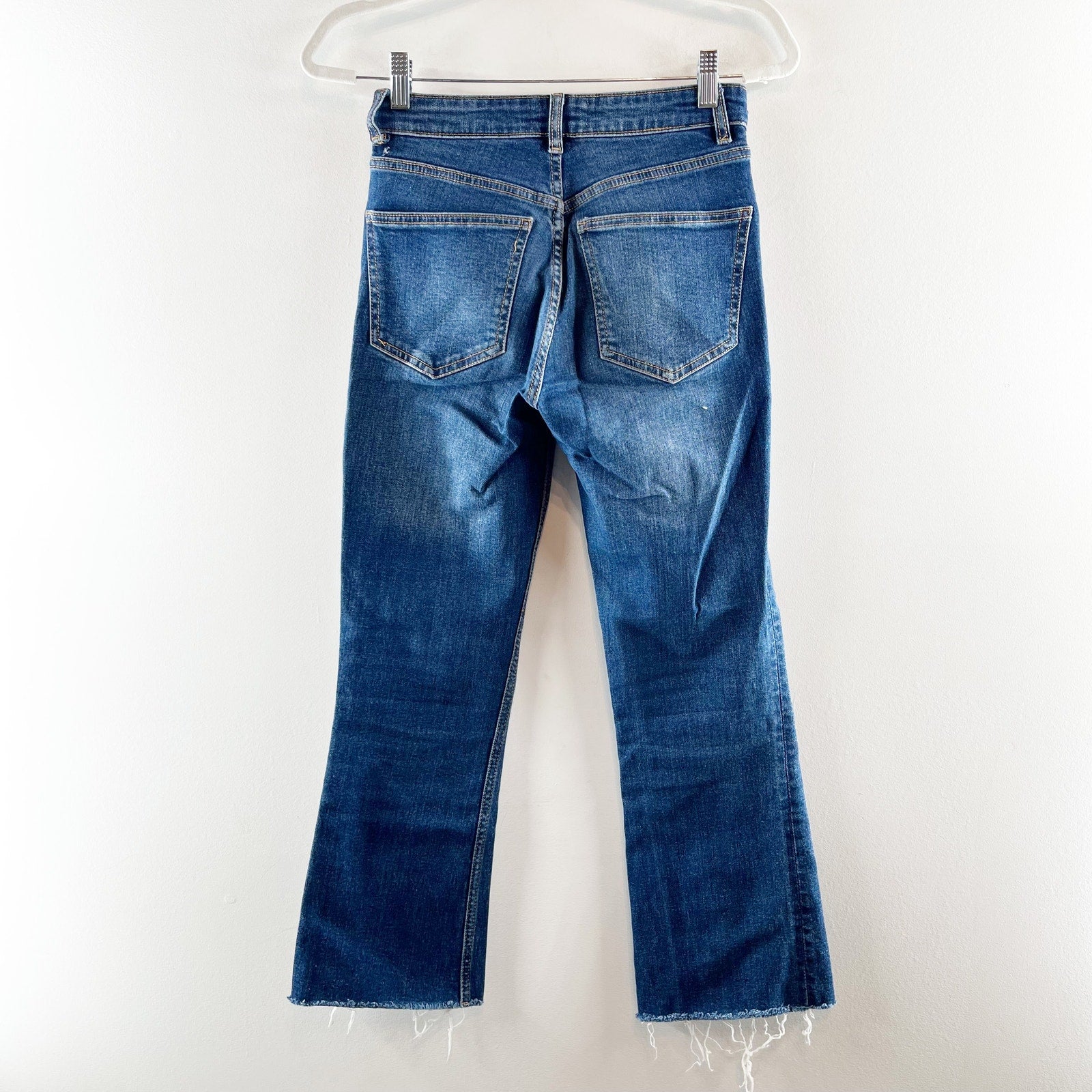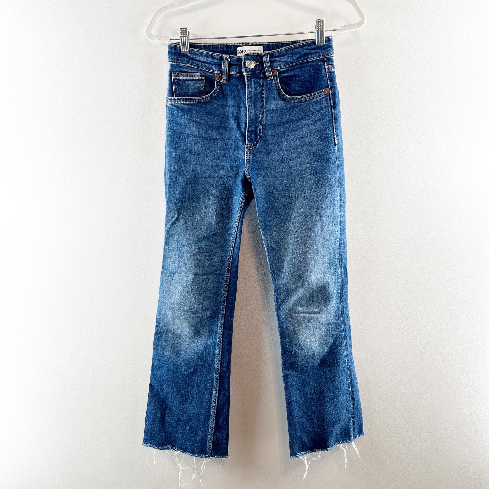ZARA High Rise Cropped Raw Frayed Hem Flare Jeans Blue 4