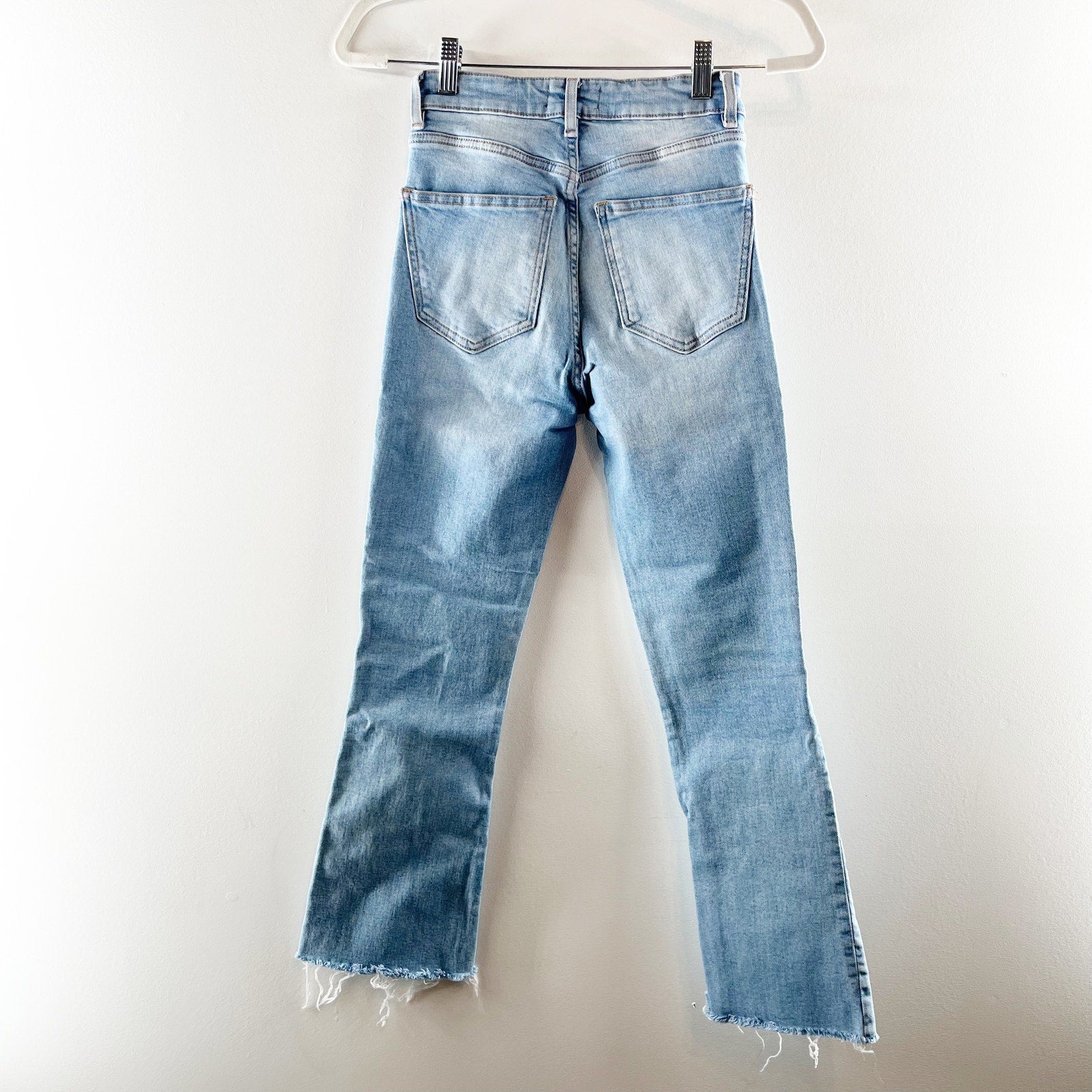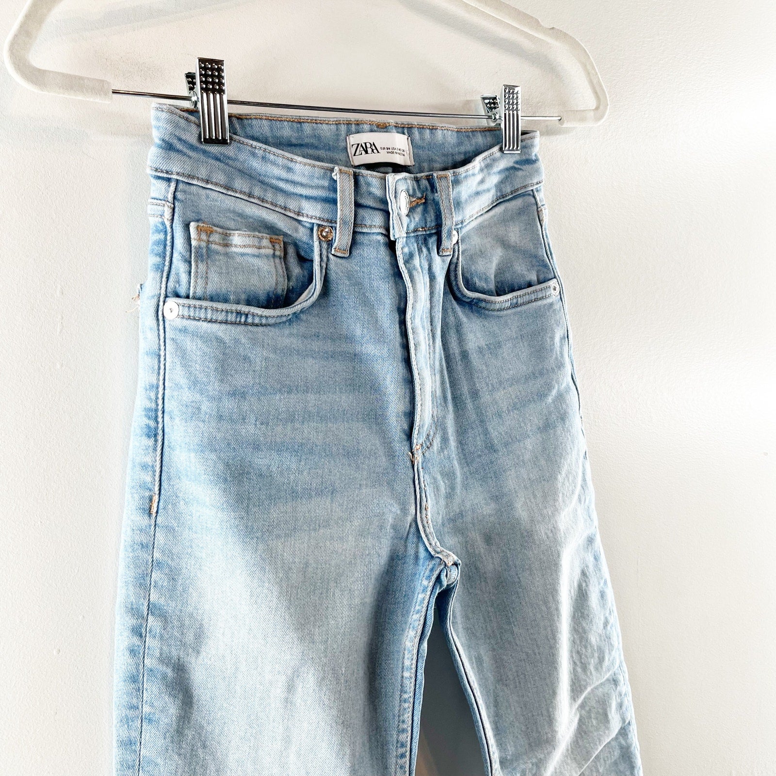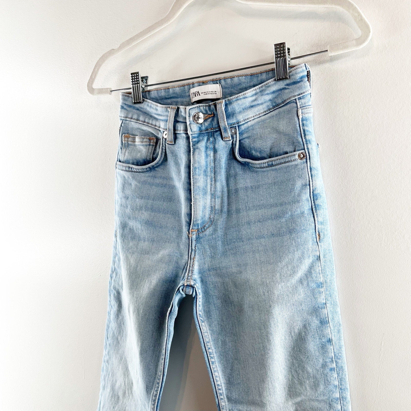 ZARA High Rise Flare Boot Raw Hem Light Wash Blue 2