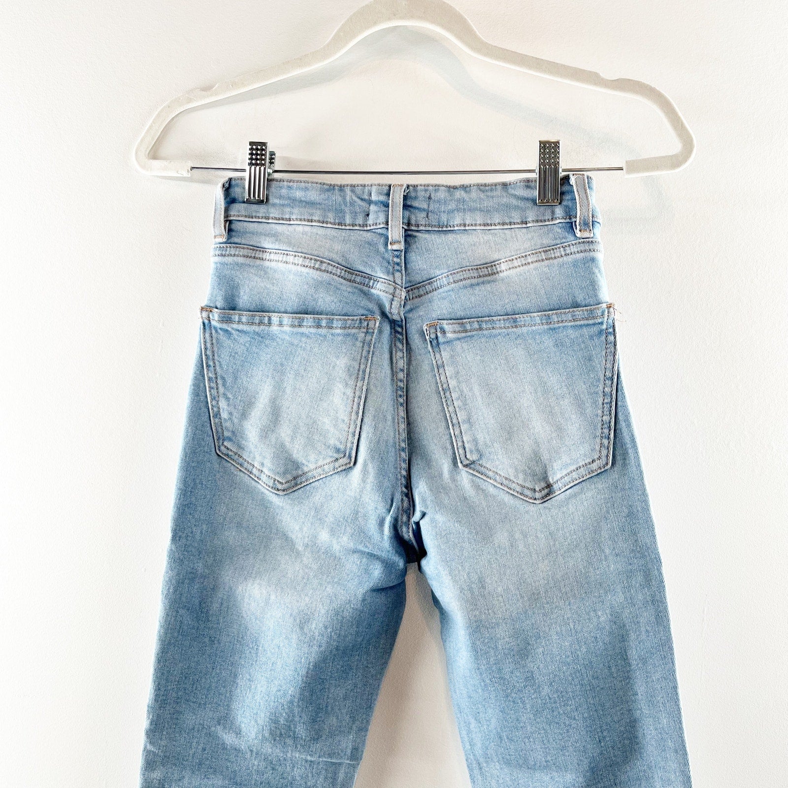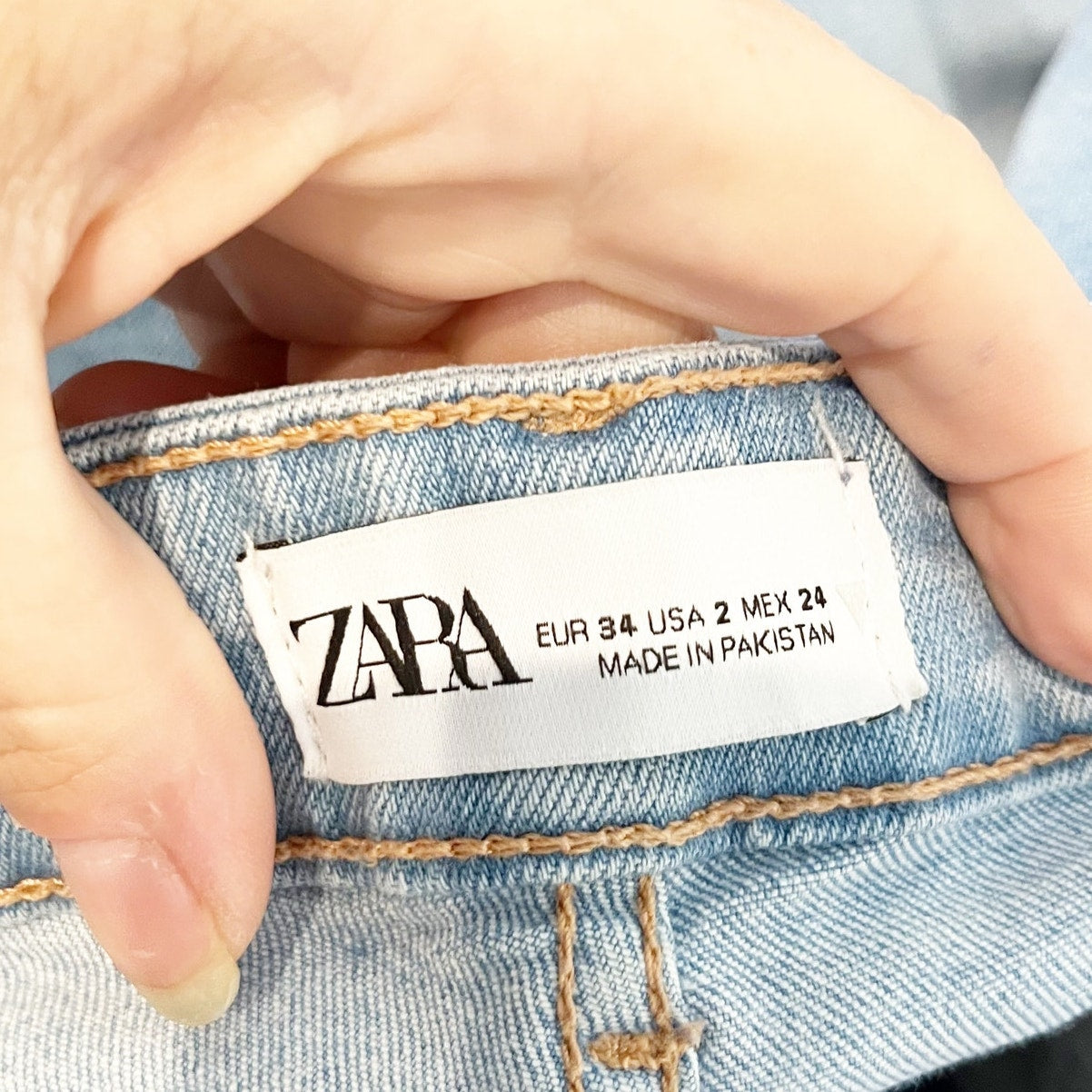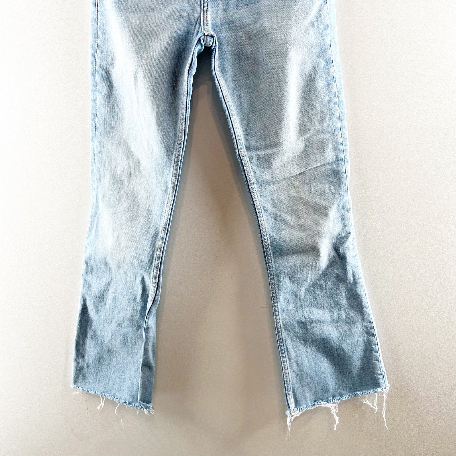 ZARA High Rise Flare Boot Raw Hem Light Wash Blue 2