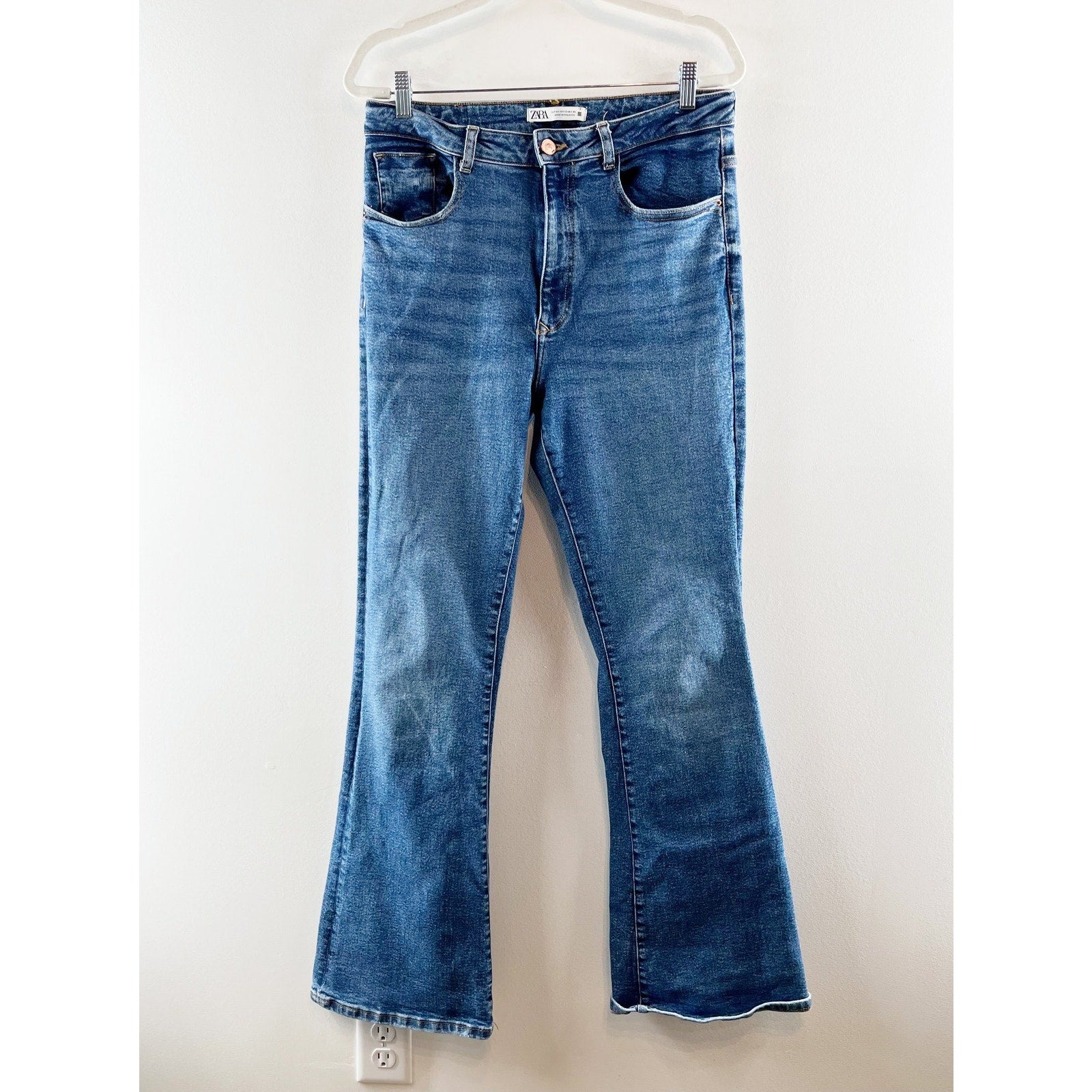 ZARA High Rise Flare Leg Denim Jeans Dark Wash 12