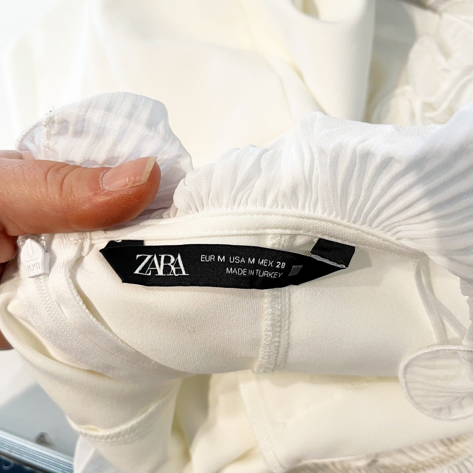 ZARA Ruffle Off Shoulder Mini Dress White Medium