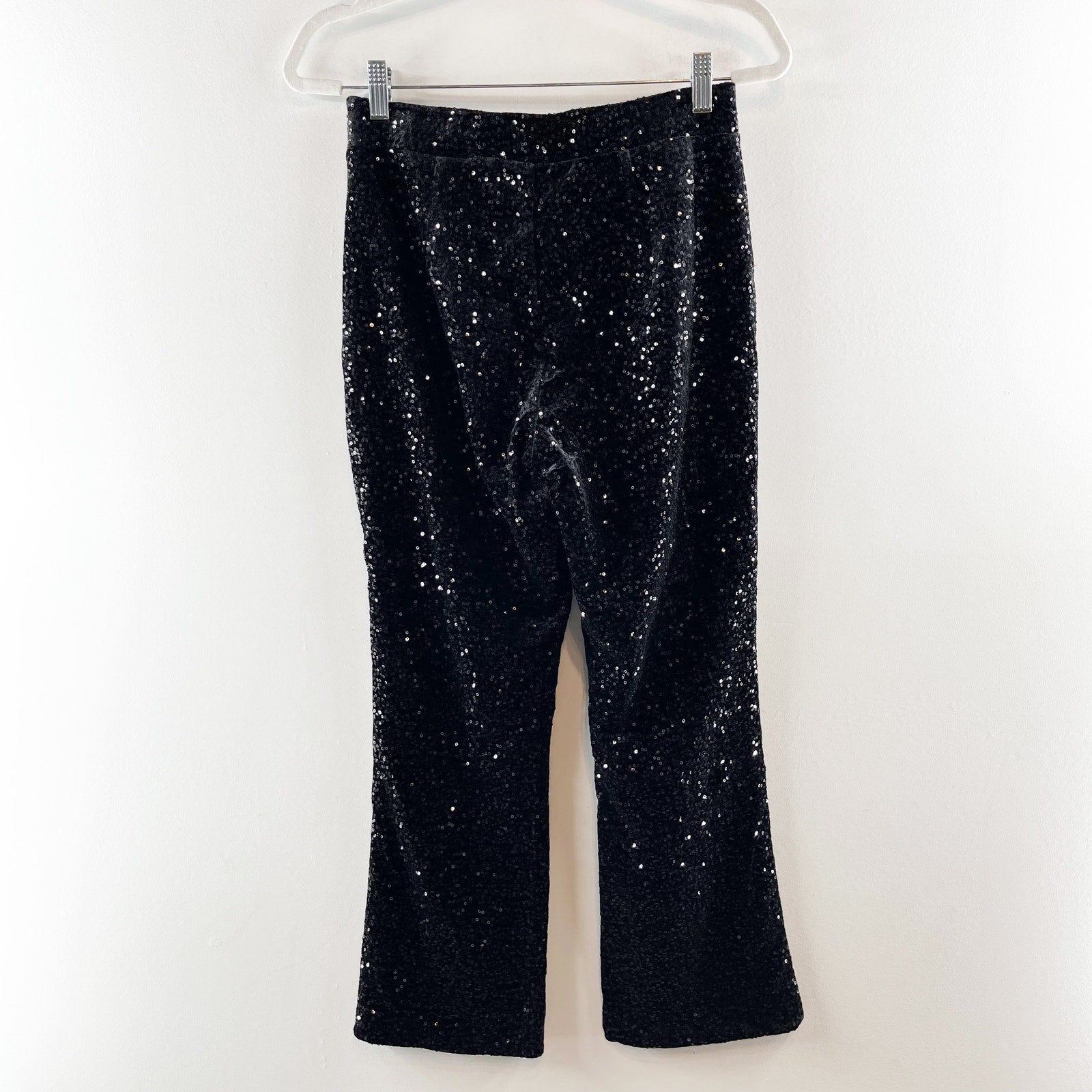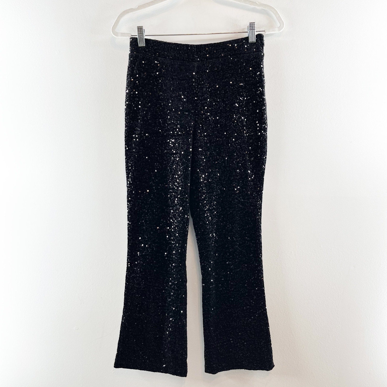 Zara Sequin Embellished High Waisted Flare Trouser Pants Black Medium