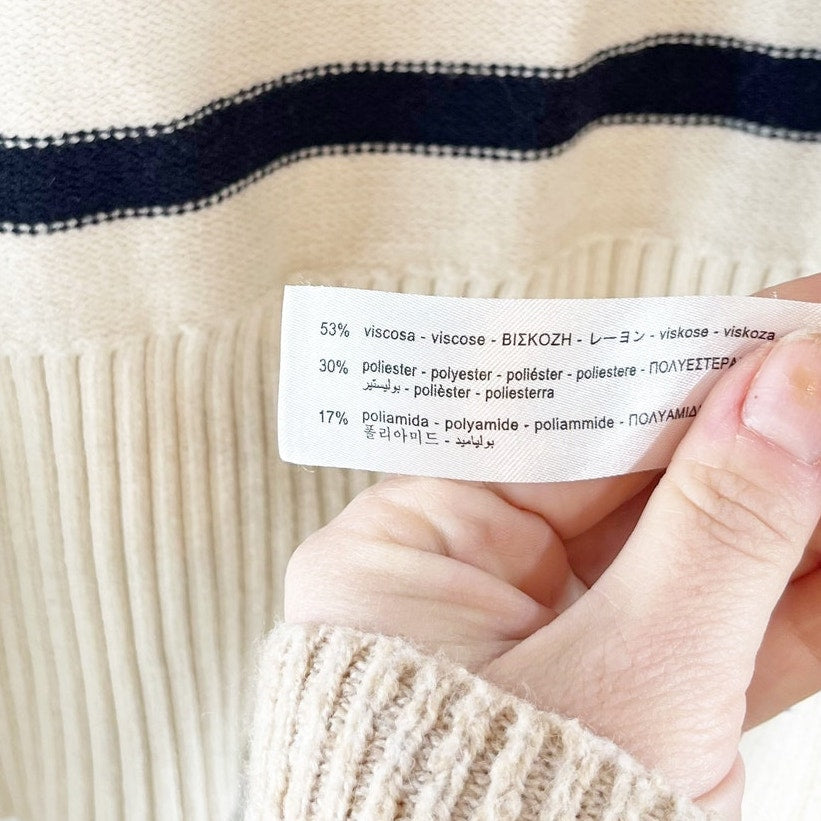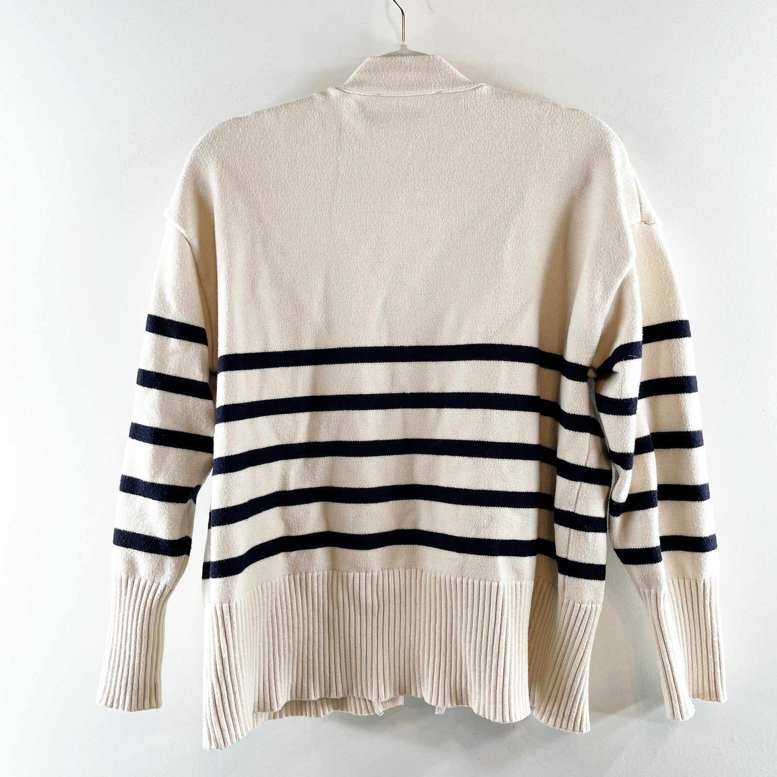 Zara Striped Long Sleeve V-Neck Button Front Cardigan Sweater Cream Navy Small
