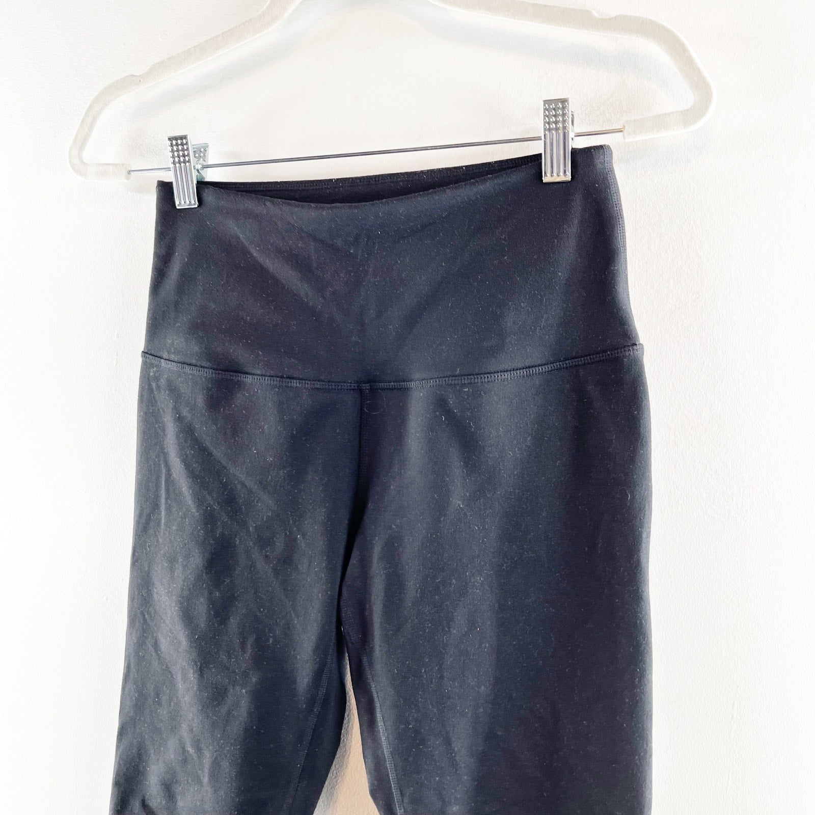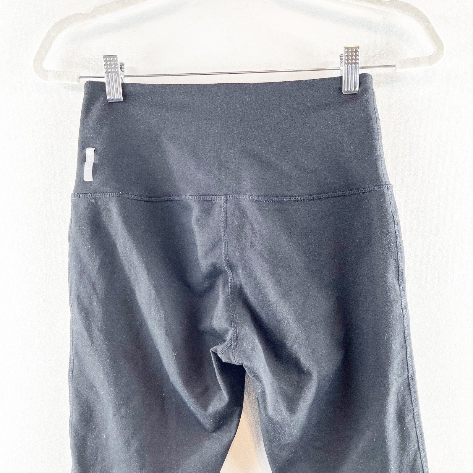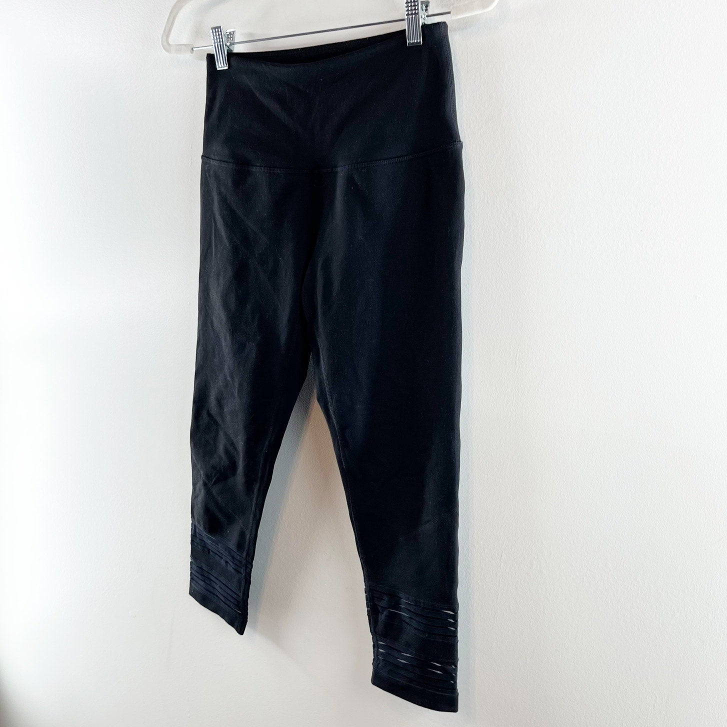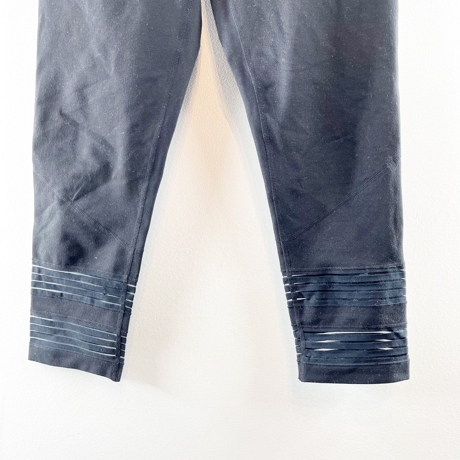 high waisted, cropped, leggings, yoga, pants, black, mesh trim hem, running, workout